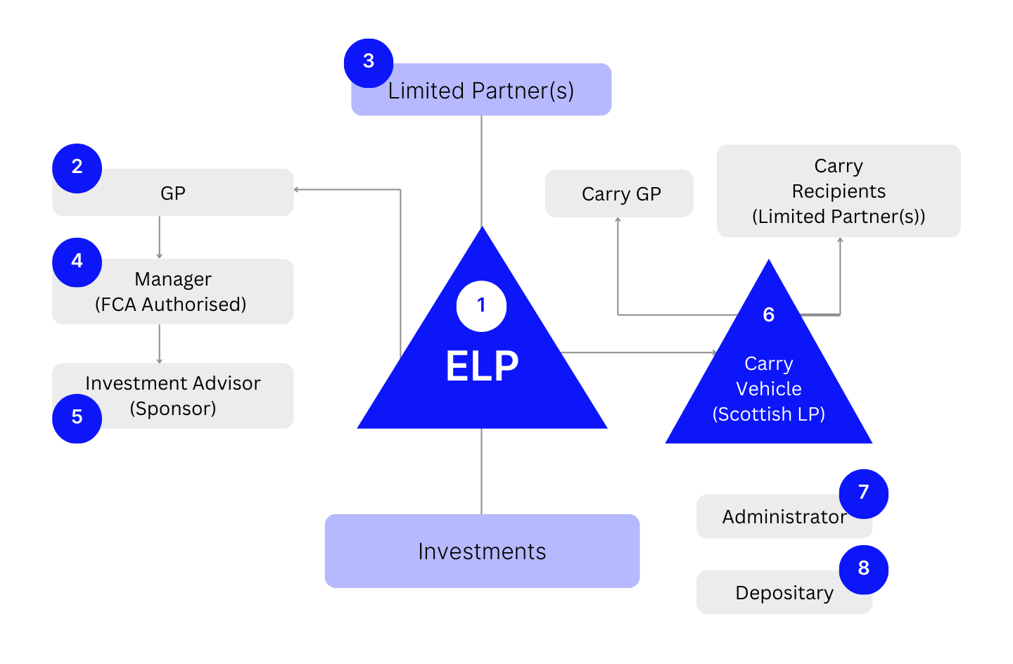 - Carry Vehicle: Typically structured as a Scottish Limited Partnership (SLP), it is used for receiving carried interest and is often also the vehicle through which the sponsor's commitment (i.e. "GP Commit") is made, benefiting from its separate legal personality.