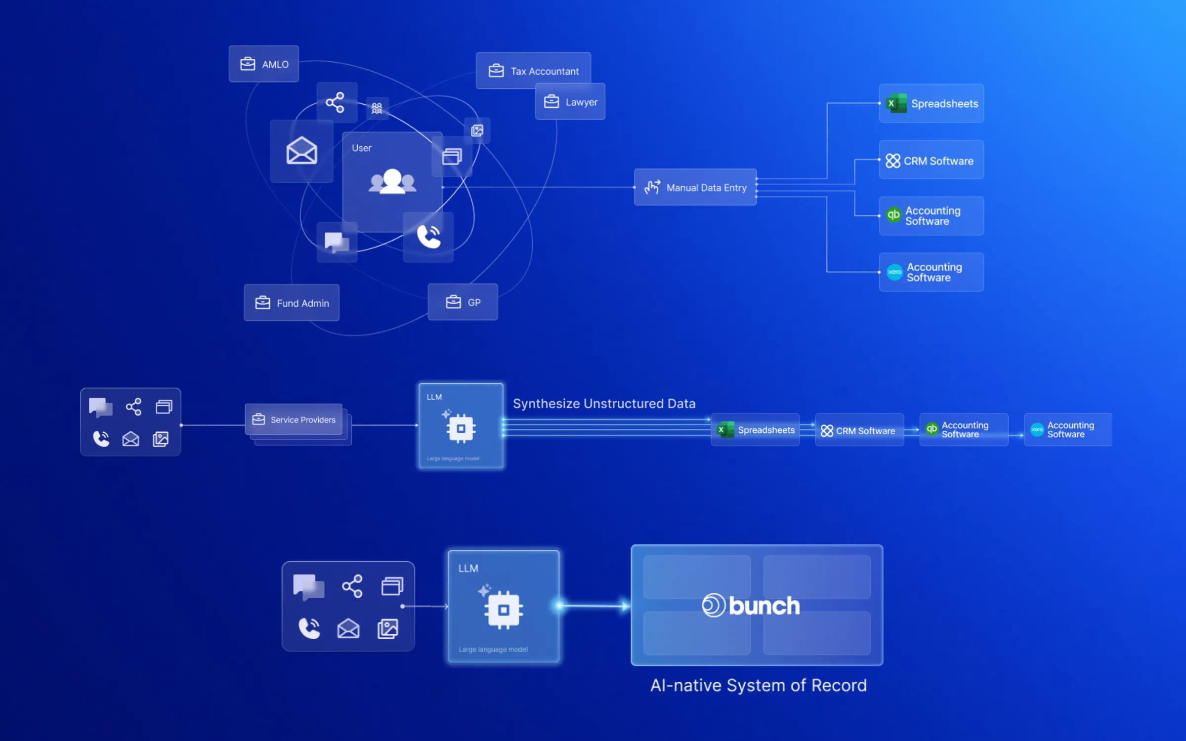 Our goal is not to patch up broken workflows with automation, but to rethink how operations should work in the first place: as software-native, AI-powered, service-backed systems. bunch is not another dashboard, it’s your digital fund administrator.