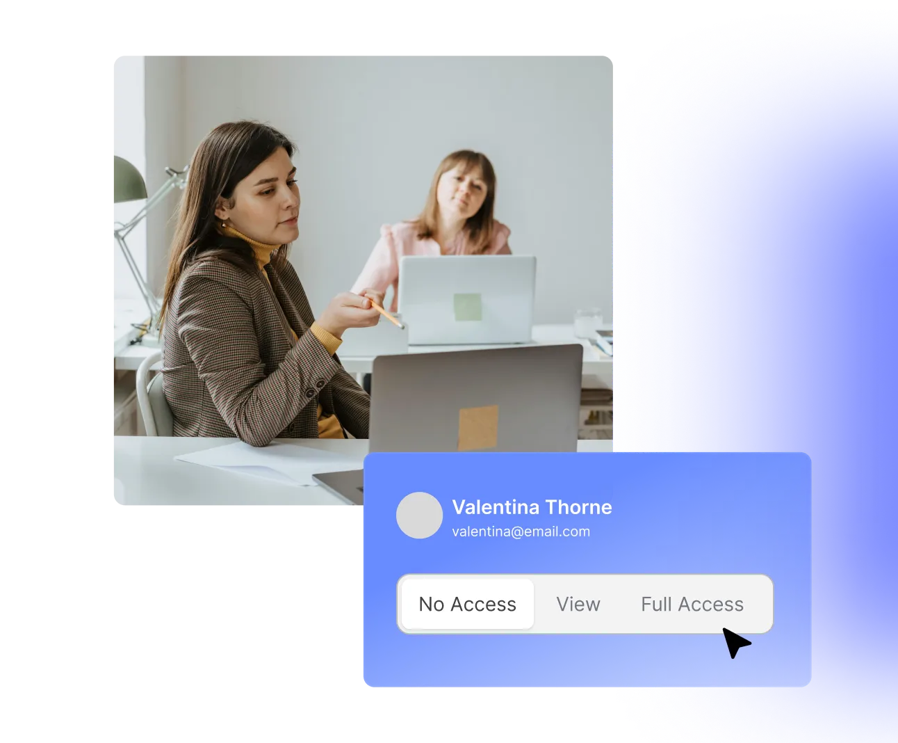 Set granular roles for each team member. Mirror any user’s access to confirm permissions before sharing.